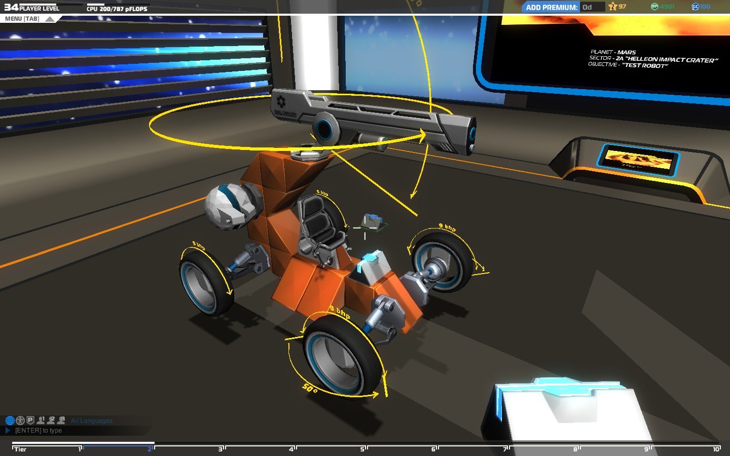 Voici par exemple une arme à feux de tiers 4 : il y a différents block, des roues, des hélices, des radars, des boucliers, des ailerons et des armes à débloquer au fur et à mesure.